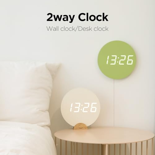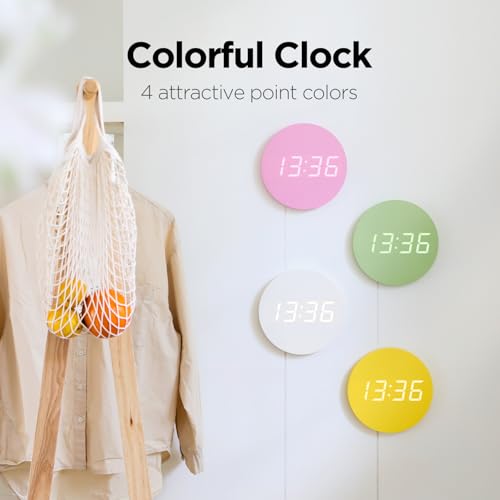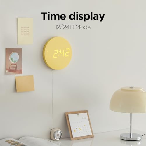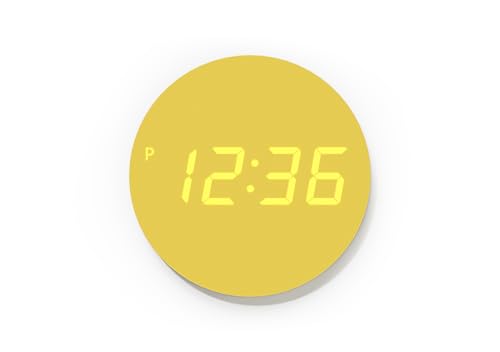 The mooas Crayon Mini Digital Wall Clock is a compact 8-inch LED clock that combines modern functionality with vibrant design. Featuring a bright neon yellow display, this versatile timepiece functions as both a wall clock and desk clock with its sophisticated wooden stand. The smart night mode automatically dims the LED brightness at preset times, ensuring clear visibility during the day without glare at night. With 12/24-hour format options, silent operation, and a convenient time memory function powered by a CR2032 battery backup, this $34.99 clock adds a colorful accent to any room while providing reliable timekeeping for bedrooms, kitchens, offices, or kids' rooms.